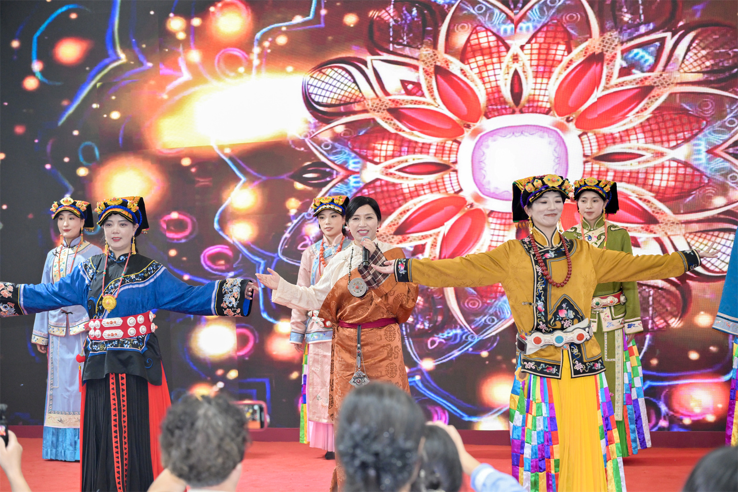 非遗展演巡演区,全天侯进行非遗展演巡演,举行藏羌非遗歌舞及服饰表演,阿坝县藏族民间曲艺《折嘎》,表演者通过脸谱和装扮,配合手中的道具,将民间传说和英雄神明的故事生动呈现,这不仅是一场表演,更是藏族乡亲传递吉祥和快乐的传统艺术;持人:一场穿越千年的文化回响—羌族非遗表演《羊皮鼓舞》,让观众静心聆听来自远古的回响,感受那份粗犷中的虔诚和节奏里的灵魂。一首动人心弦的藏族歌曲《格桑花》中,同步欣赏别斯满服饰和安多服饰的精彩展演。举行阿坝州精品歌舞节目展演;在会展中心举办服饰巡演,同步展示阿坝农特产品及非遗产品。