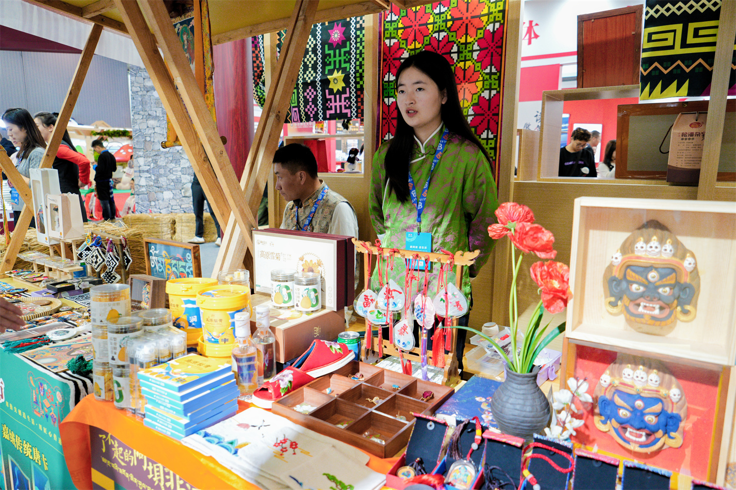 在非遗集市,阿坝州13个县市将独特文化魅力与丰富的旅游资源进行集中展示,并销售各类独特的非遗产品,包括传统手工艺品、特色服饰、民族乐器、藏羌织绣、唐卡绘画、藏香、藏族石雕等;同时展示文创产品,如以非遗元素为主题的文具、饰品、家居用品等;现场进行非遗活态展示,邀请传承人展示传统技艺制作过程,如手工剪纸、陶艺制作、银器锻造等,让游客沉浸式感受非遗魅力。