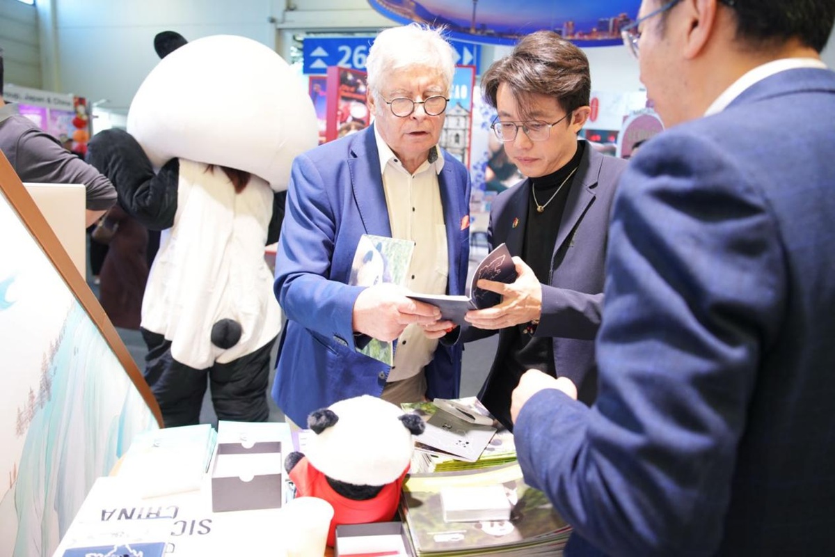 今年,四川展团亮相位于柏林国际展览中心的中国馆,通过双语宣传资料发放、旅游线路专业咨询、入境业务洽谈对接,以及四川非遗文创展示和熊猫人偶现场互动,向全球旅行商全方位推介四川文旅资源和产品。