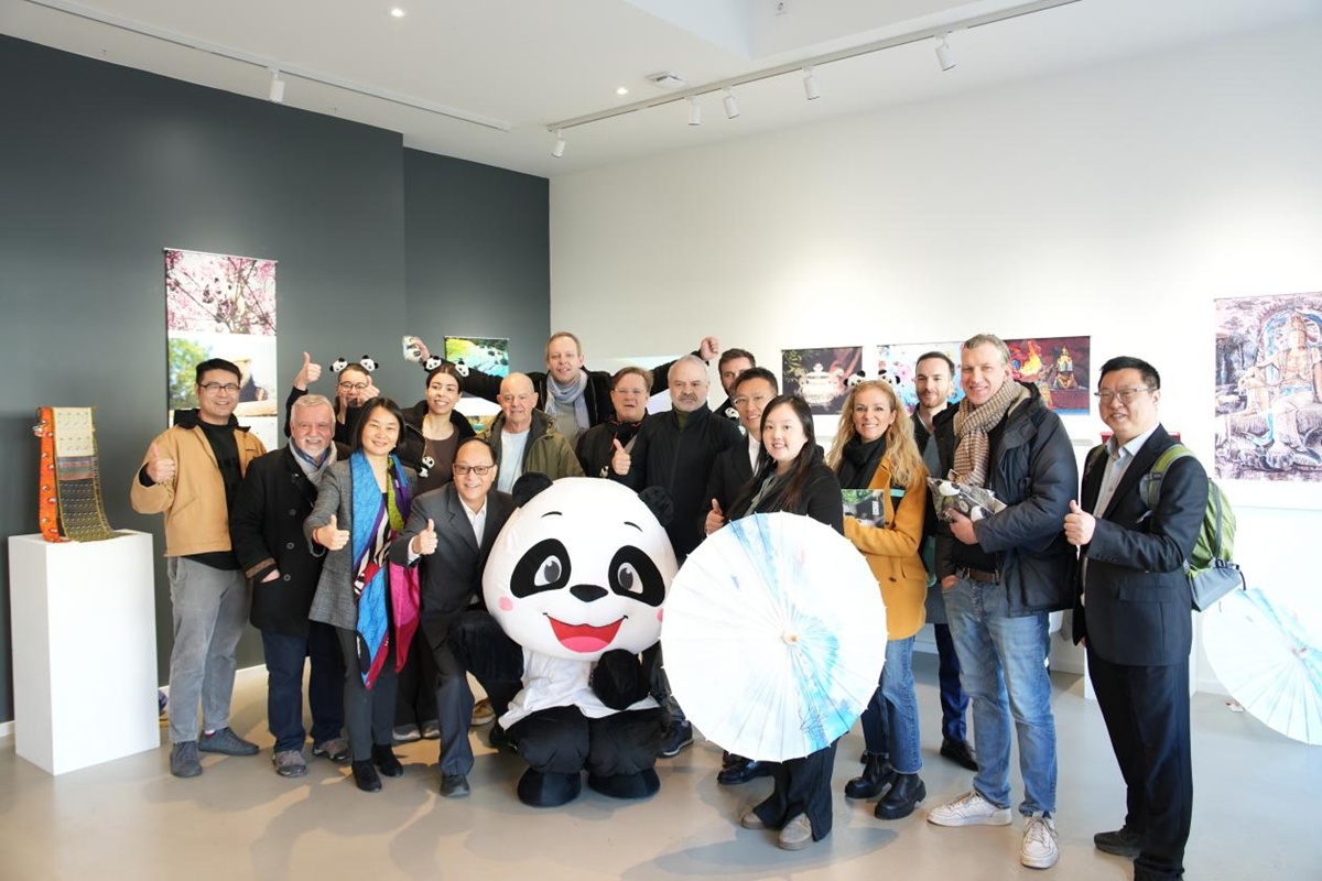 3月3日至5日,2026“熊猫走世界”中国(四川)大熊猫文化旅游周公众推广活动在柏林奥林匹克长廊美术馆(Galerie Olymp)举行。活动以“多元展示+互动讲解+沉浸体验”为形式,设置了熊猫迎宾区、精品图片展廊、非遗文创展台、宣传物料展台、特色表演与沉浸互动体验区等丰富内容。