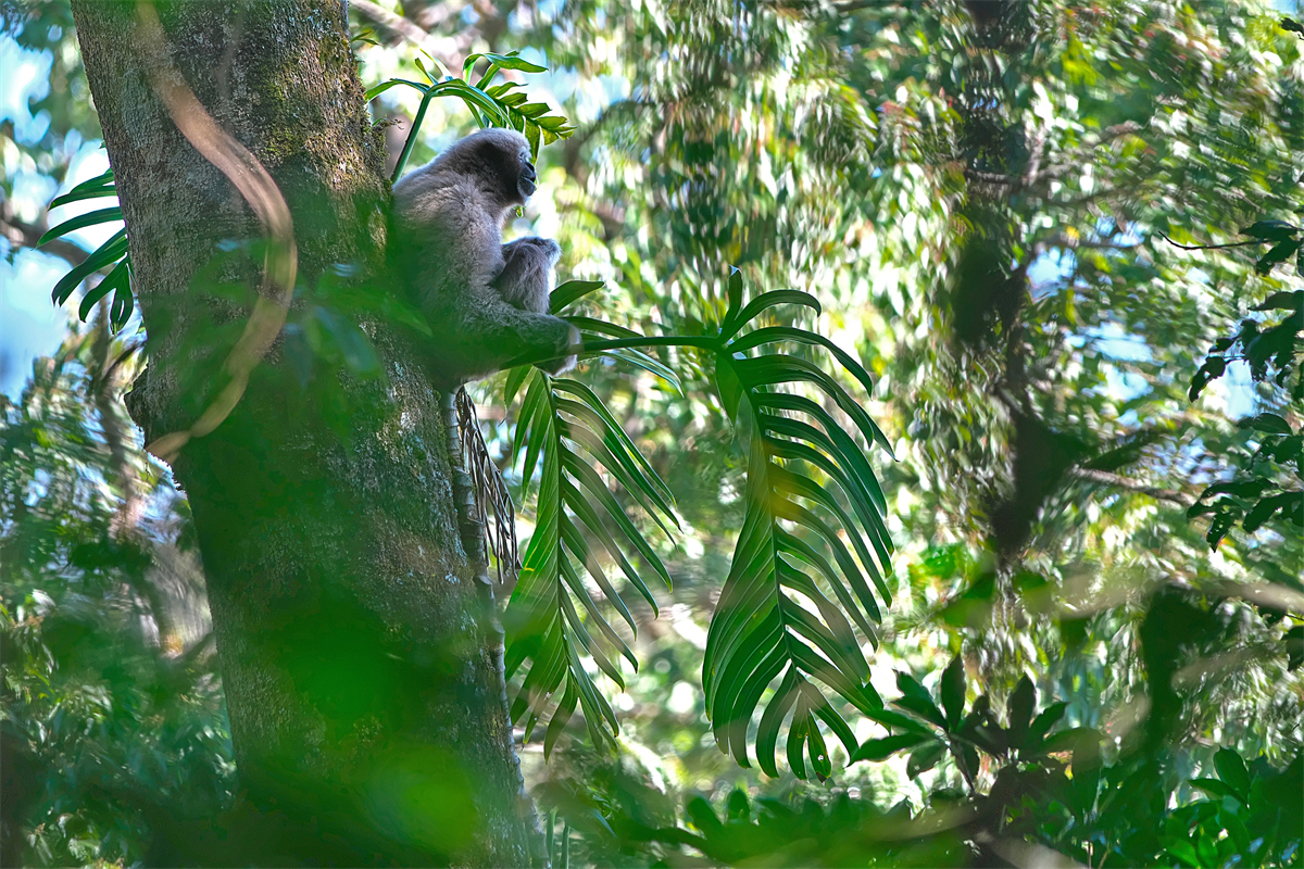 旗舰物种:天行长臂猿(母猿与爬树龙,董磊 摄)