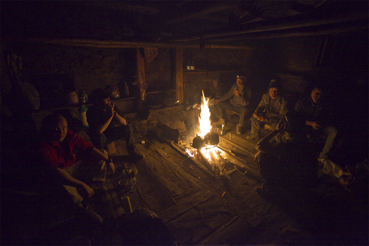 冬季调查,篝火围坐(董磊 供图)