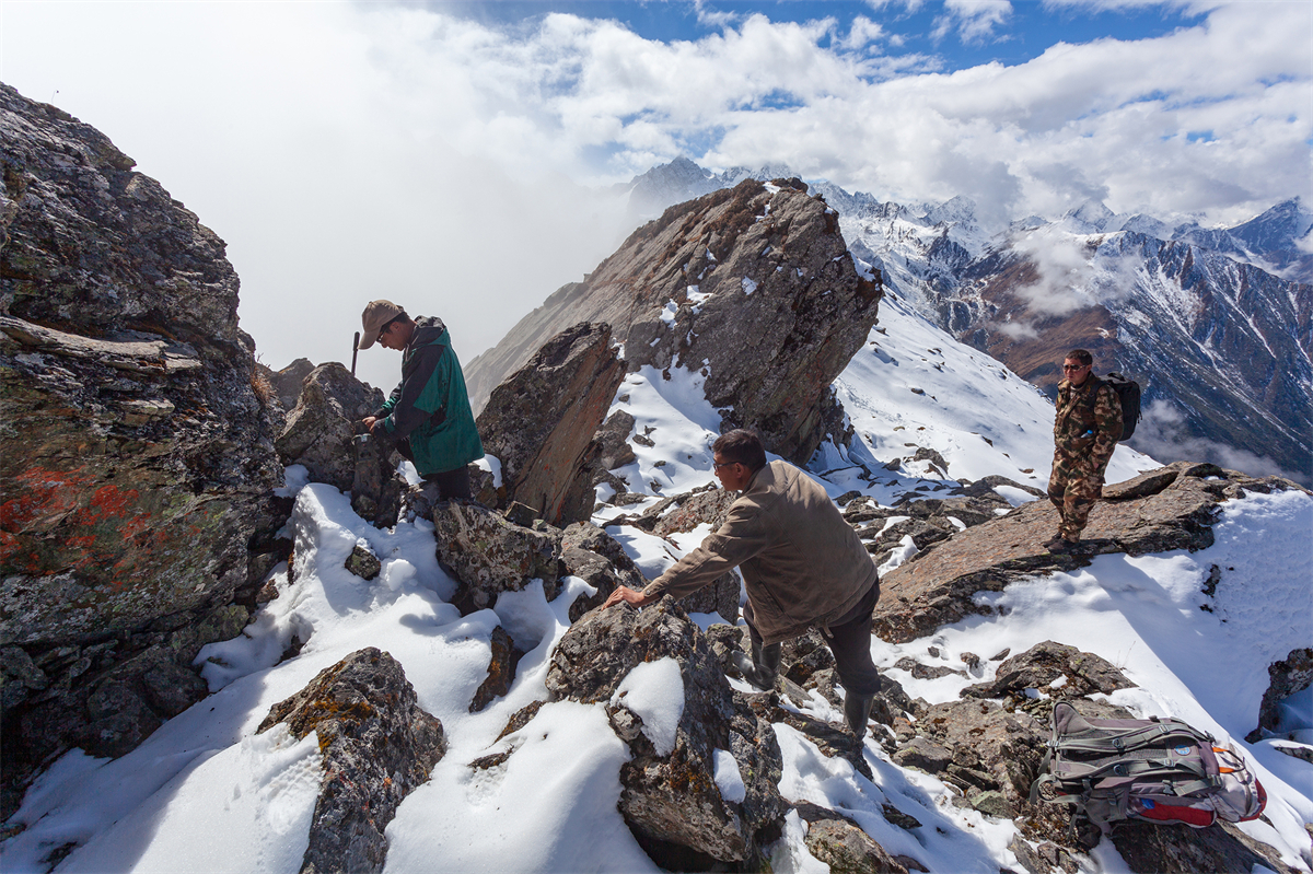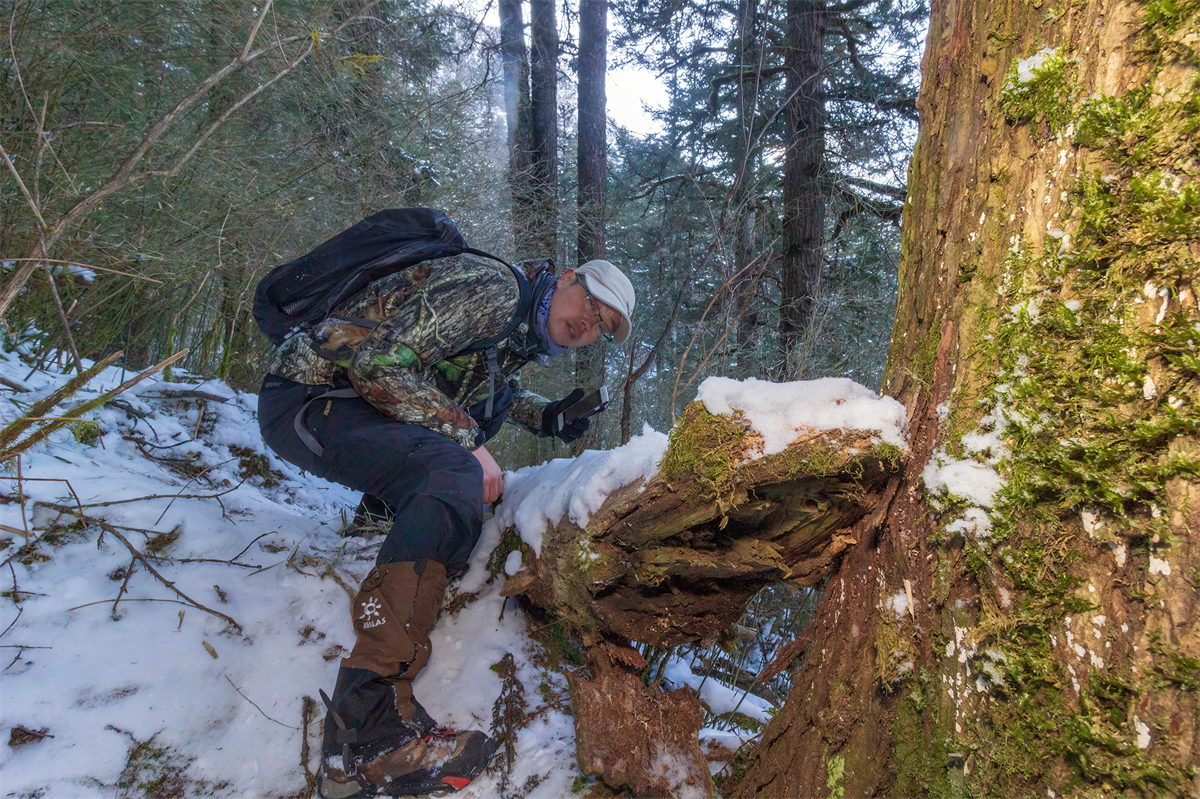 安放红外相机(卧龙雪豹山梯子沟,董磊 摄)