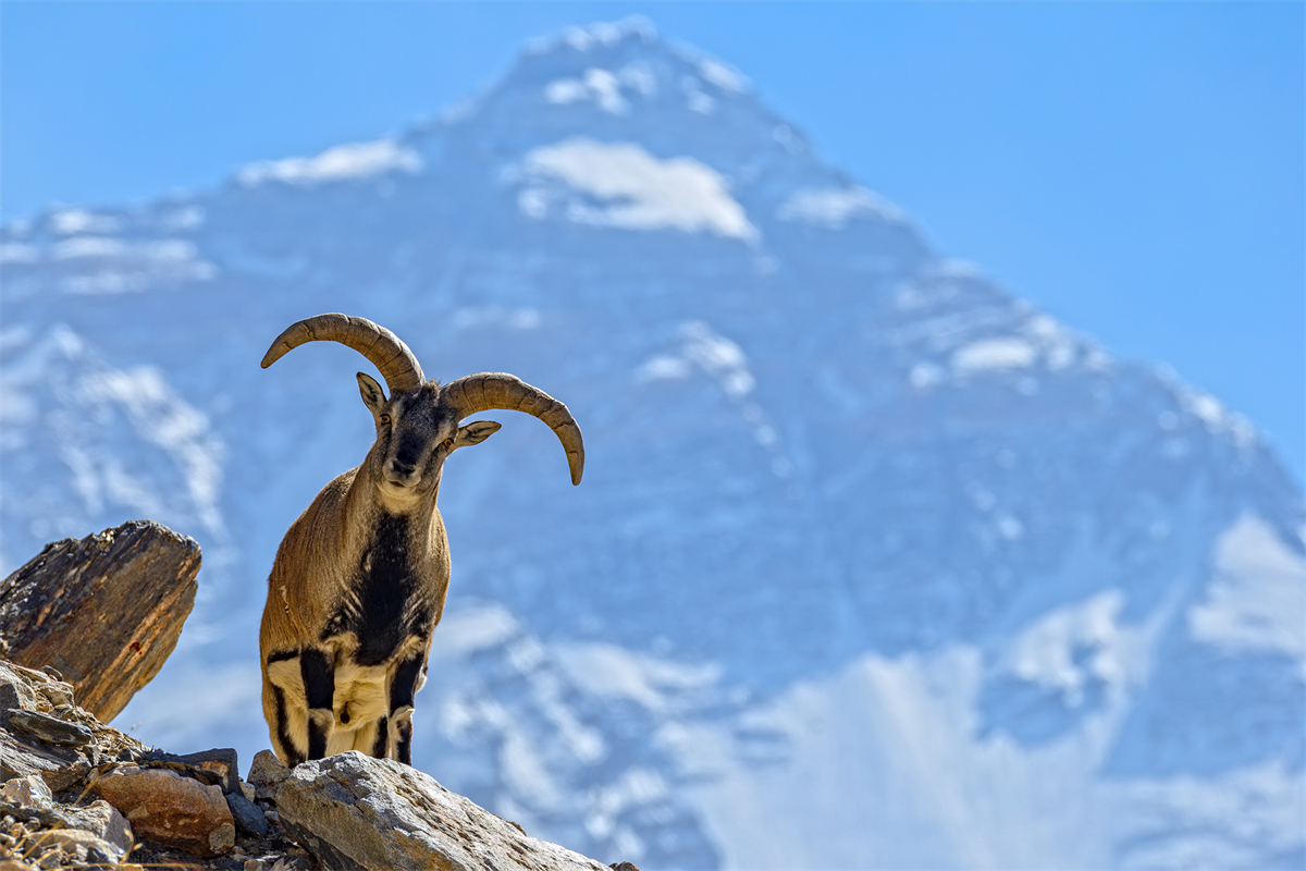 岩羊与珠峰(珠峰大本营,董磊 摄)