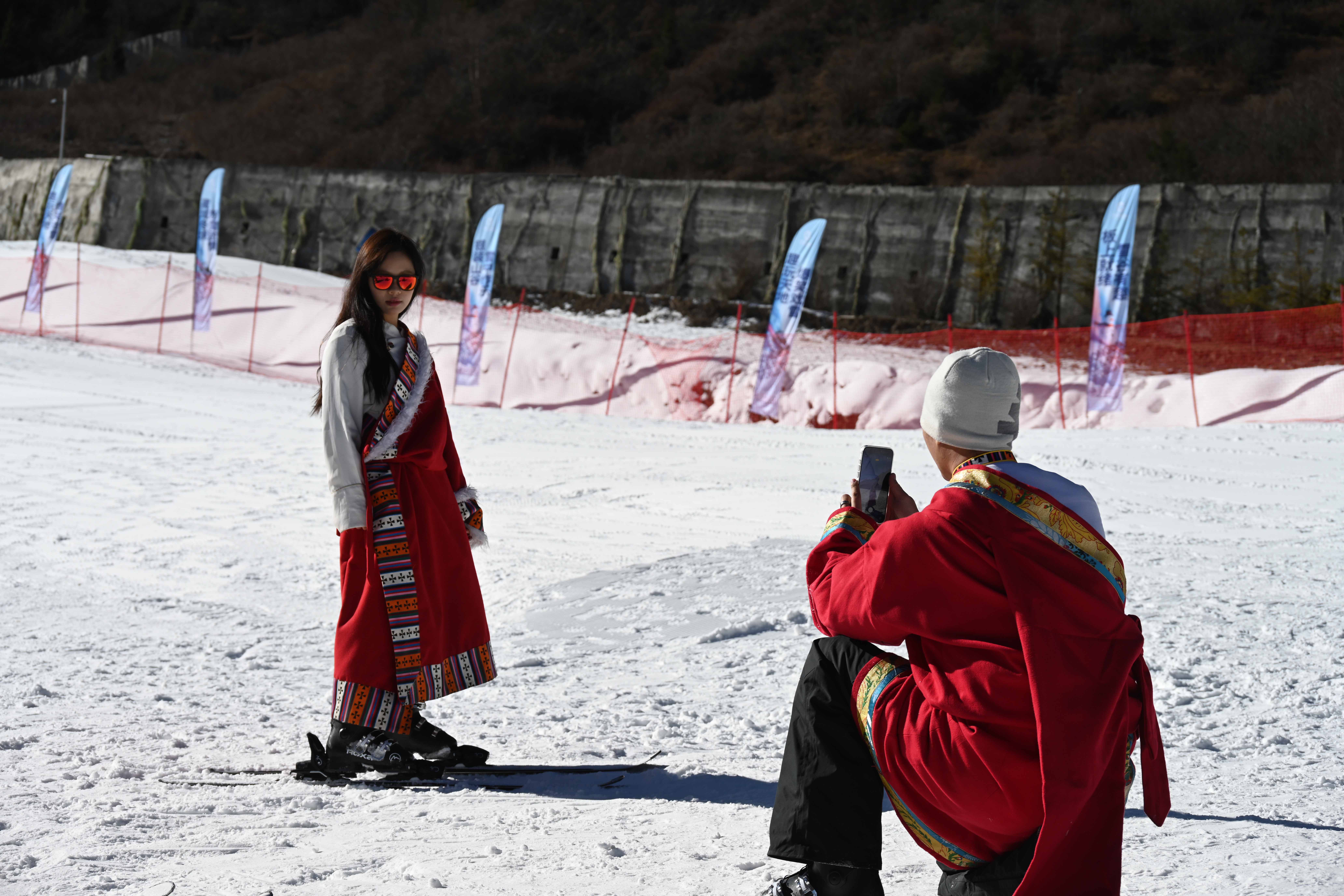 仪式结束后,滑雪系列活动轮番上演,点燃全场氛围。藏装滑雪秀独具九寨地域风情,滑雪教练身着藏装、扛着度假区旗帜列队滑行,将藏族文化与冰雪运动完美融合,成为雪场一道靓丽风景线。雪道上,无论是初尝冰雪的新手,还是技艺娴熟的爱好者,都在尽情驰骋,感受速度与风的乐趣,尽显全民参与的活动初心;此外,全程开放的滑雪姿势大挑战、3分钟达人课堂等活动,让新手快速掌握核心滑雪技巧,专业摄影师实时抓拍精彩瞬间,助力游客轻松“出片”。