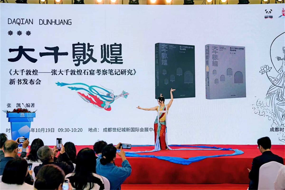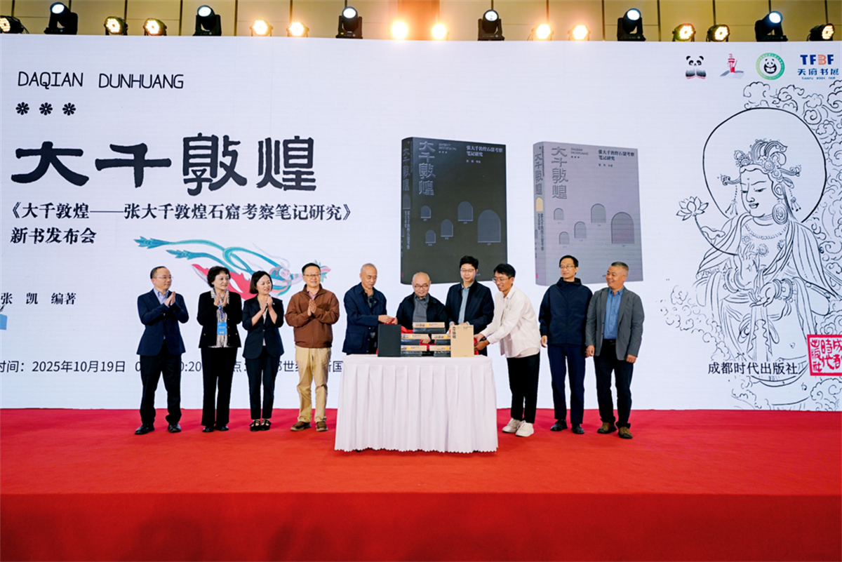 10月19日天府书展上,由四川博物院副研究馆员张凯潜心编著、成都传媒集团旗下成都时代出版社出版的重磅新作《大千敦煌——张大千敦煌石窟考察笔记研究》正式发布。200余幅高清影像,70万字编著内容,首次全景式公布了张大千1941年敦煌考察的原始笔记手稿,为敦煌学研究揭开了尘封的历史帷幕,带来了宝贵的第一手资料。