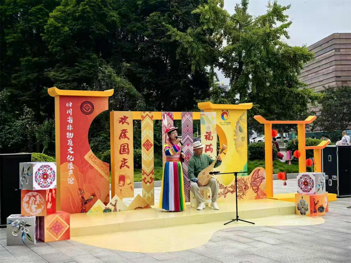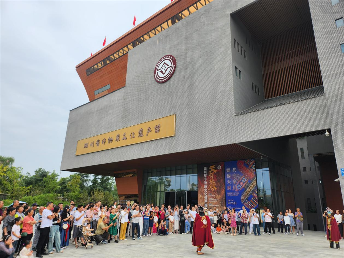 10月8日当天,四川非遗项目九顶山山歌、成都皮影等在非遗馆广场前上演,演员们的精彩表演赢得了现场观众的阵阵喝彩与掌声。
