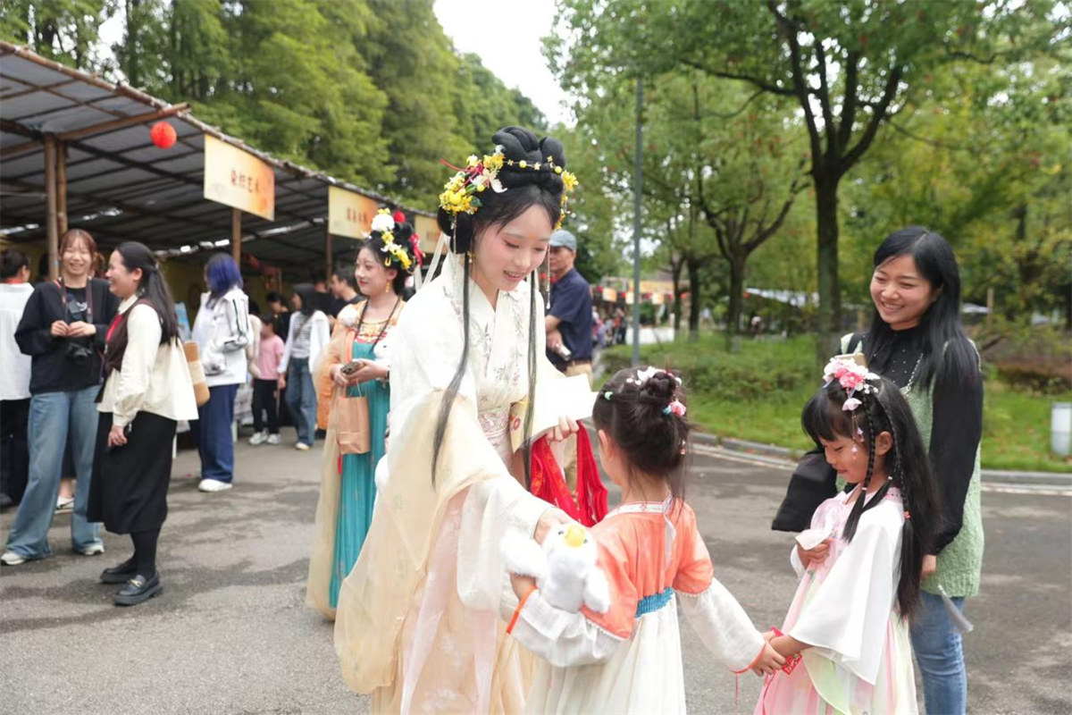 今年国庆假期恰逢中秋佳节,10月6日,“国风月正浓”中秋游园会互动合影沉浸体验活动热闹举办。活动现场,“嫦娥”广袖轻舒,手持祈福丝带,为往来游客送上中秋祝福;“玉兔”灵动可爱,与大家一同猜灯谜、投壶、蹴鞠,重现古人中秋雅集盛景;“月老”和蔼可亲,将那些古老而动人的故事娓娓道来。“这个中秋节过得非常有意义,既有文化底蕴,又很有趣味性。”市民赵先生说。