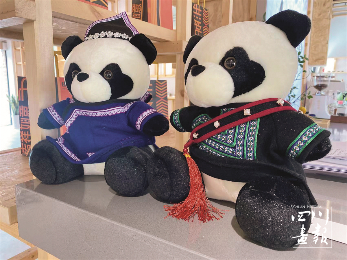 以熊猫元素为创意核心、彝族文化为底蕴设计的玩偶(越西县文化广播电视和旅游局供图)