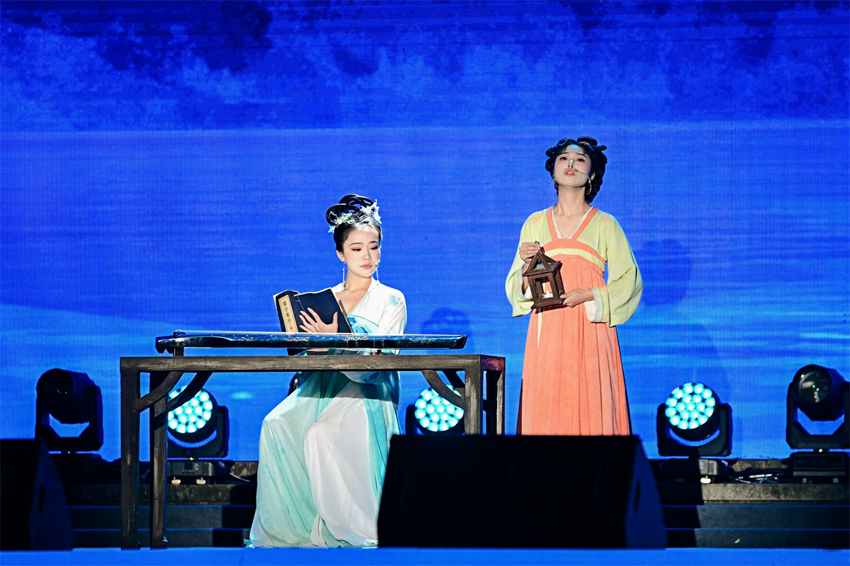本次展演推动“跟着诗词去旅行”,以李白的“诗中月”辉映“中秋月”,以“回到四川、回到绵阳、回到江油”为情感主线,巧妙铺陈《月光长照金樽里》《今月曾经照古人》《共看明月皆如此》《欲上青天揽明月》四大篇章。展演伊始,开场歌舞《李白归来》便以磅礴气势将观众带入诗仙的文学世界。
