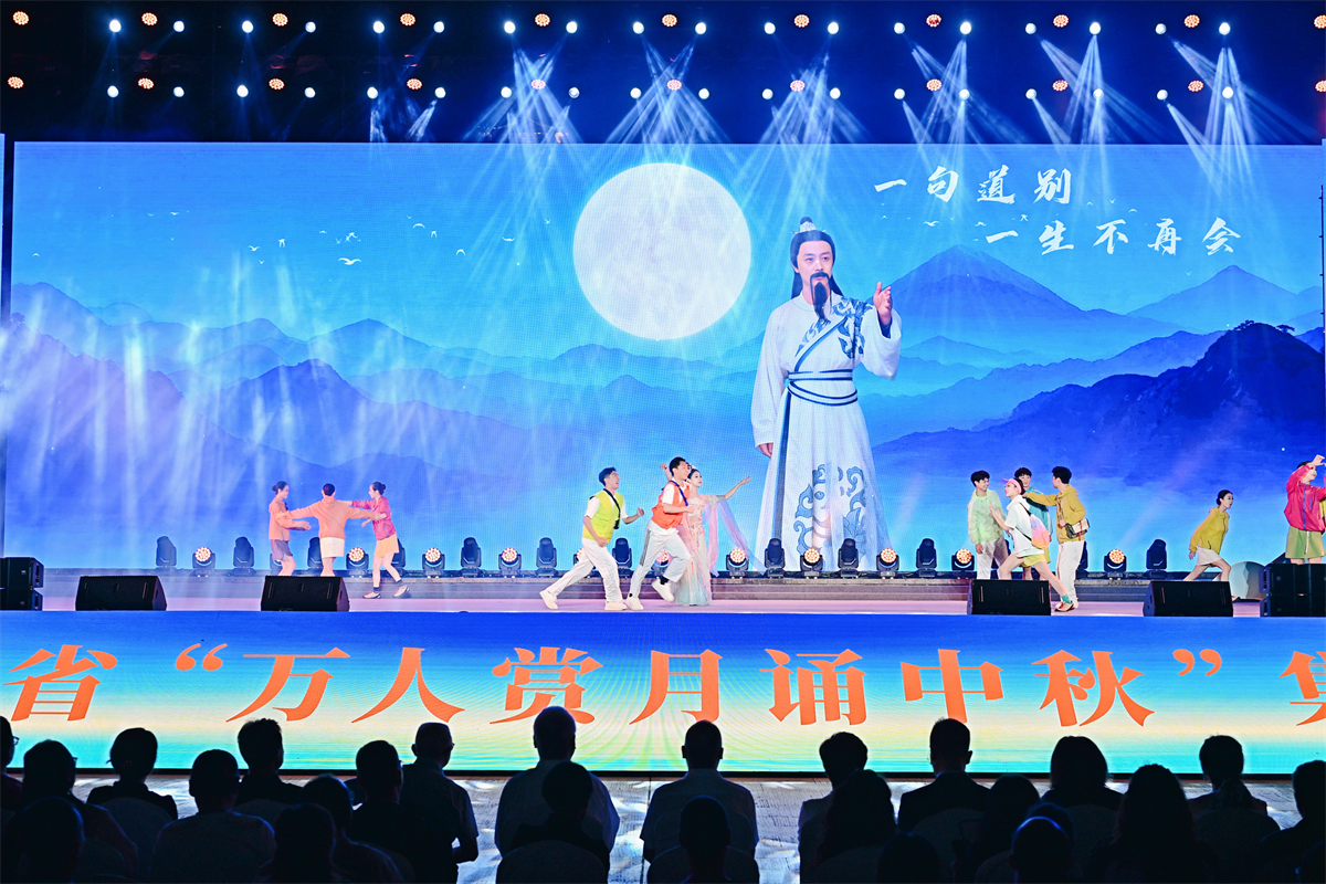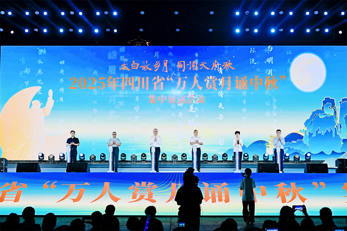 10月5日晚,中秋佳节前夕,由四川省文化和旅游厅、绵阳市人民政府主办,四川省文化馆、绵阳市文化广播电视和旅游局、江油市人民政府承办的以“太白故乡月•同诵天府秋”为主题的2025年四川省“万人赏月诵中秋”集中展演活动,在诗仙李白的故里——四川省绵阳市江油市青莲镇太白碑林广场举行。