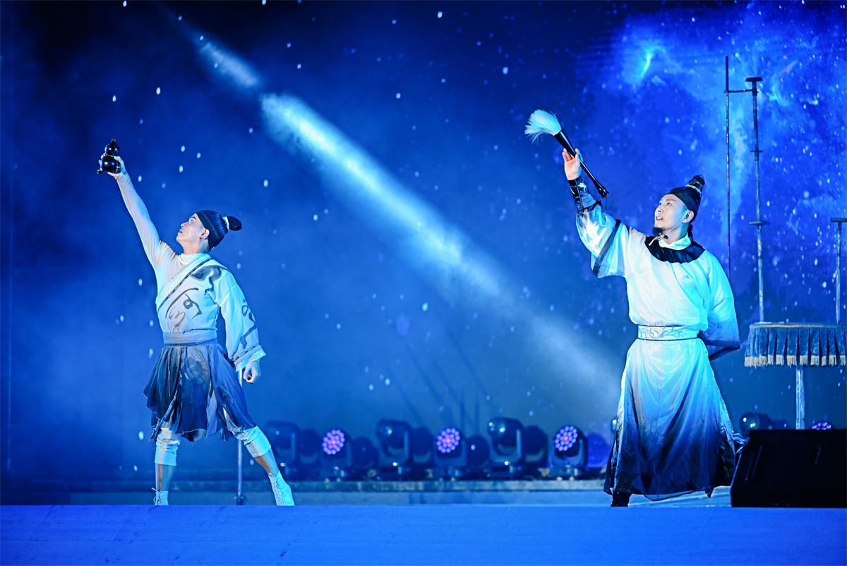 随后,川派戏韵《听说你要来四川》、相声《巴蜀逍遥游》、少儿表演唱《玉盘》童声清越、表演唱《阿姐》,生动展现了巴蜀文化的独特魅力与成渝地区的文化互动。白马藏族舞蹈《长河》舞姿灵动而厚重,舞蹈《家乡的味道》则深情描绘了绵阳地区的风土人情,杂技《诗墨江油》刚柔并济,音乐剧《将进酒》将诗仙李白的豪放不羁与万丈豪情展现得淋漓尽致。