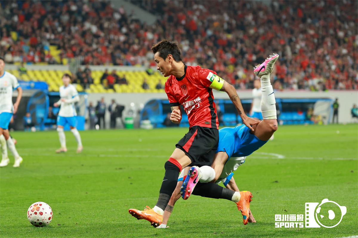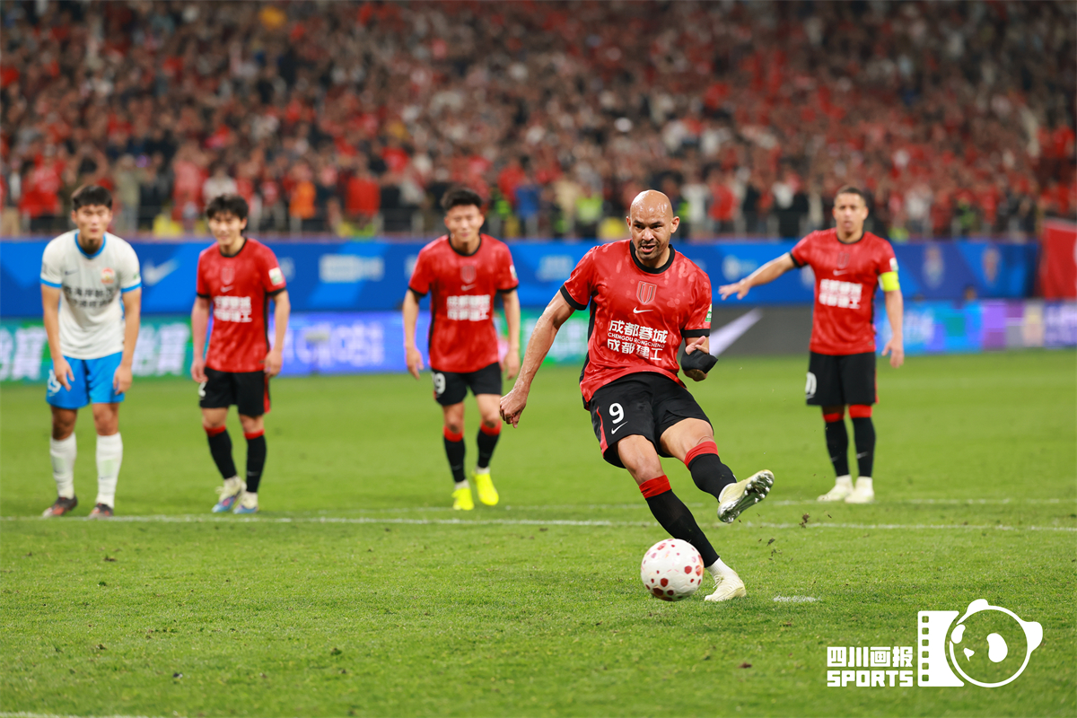 本场比赛吸引了41352名球迷到场观战,凤凰山再次展现了“金牌球市”的火爆氛围。开场仅7分钟,主队便取得梦幻开局。韦林顿·席尔瓦利用对方后卫解围失误,机敏地前插至后点小角度凌空抽射破门,为成都蓉城先拔头筹。