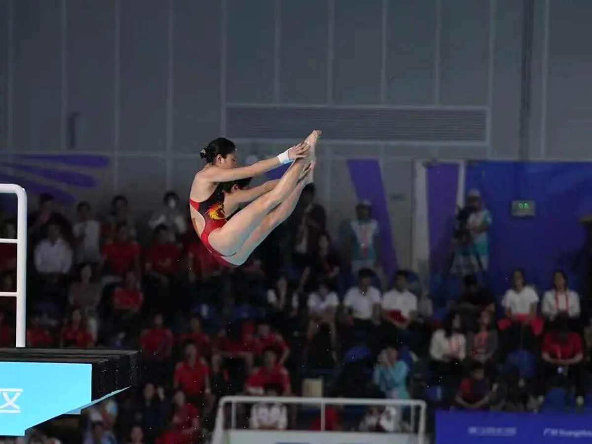 决赛中,面对全红婵、陈芋汐、张家齐等奥运选手在内的优秀运动员们的“夹击”,卢为/李蕊汐组合沉着应战,越战越勇。虽在两轮后成绩暂列第四,但两人迅速调整状态,在第三轮和第四轮都发挥出色,总分回升至第二位。最后一跳,她们顶住压力,跳出71.04分,以总分322.44分锁定银牌。