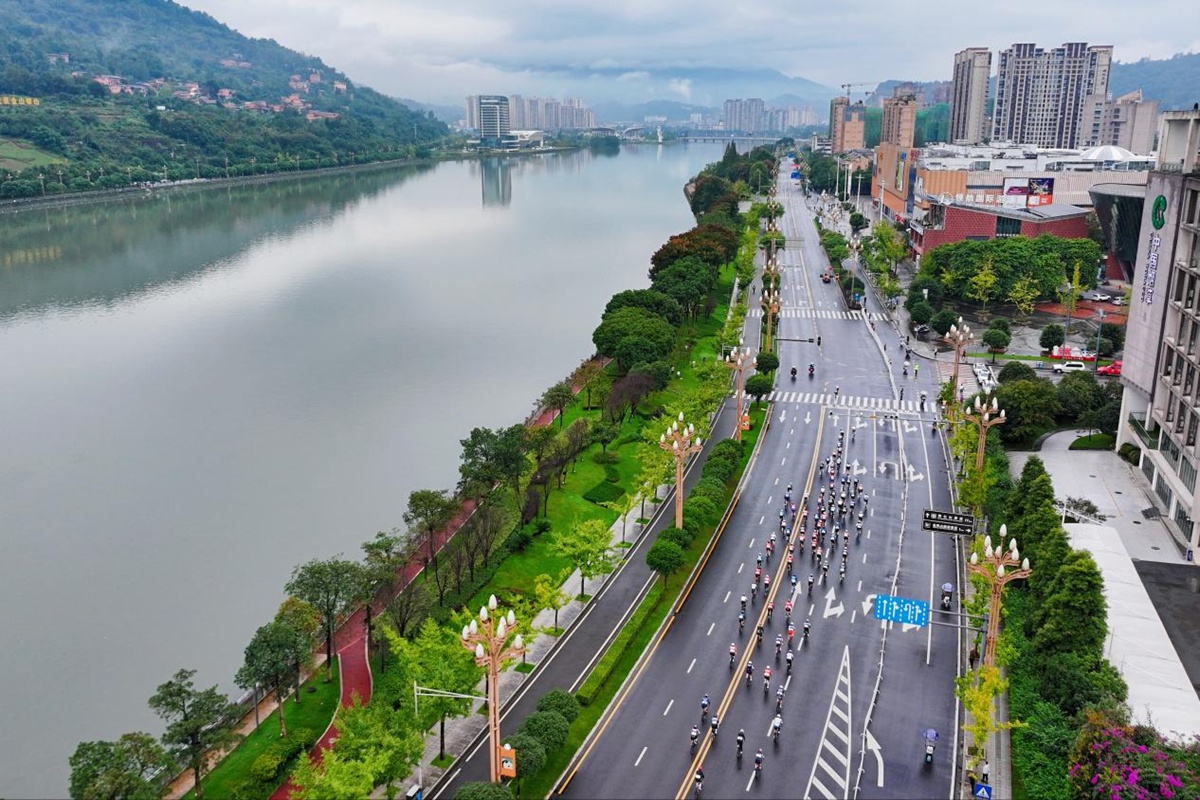 8时20分,随着发令枪响,男子公路精英组率先出发,只见选手们沿着青衣江疾驰而去,在山水画卷中展开速度与耐力的比拼。据了解,本届赛事在保留男子公路精英组、男子公路公开组的基础上,新增女子公路公开组和大众乐骑组,其中大众乐骑组创新设置“不限工具、不限时间”的“竞赛”规程,让自行车运动从专业赛场真正走进了大众生活。