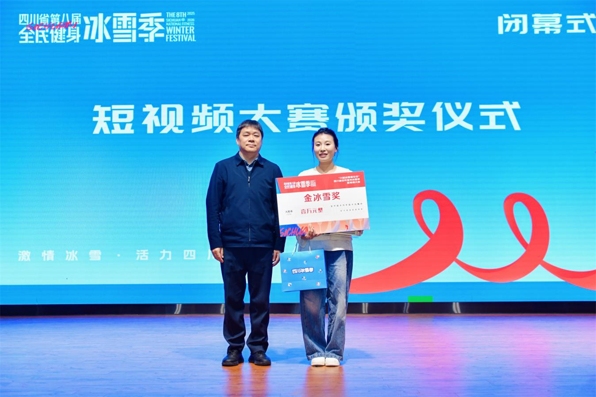 当日上午,与会人员集中前往清华附中天府学校冰球馆,观看激战正酣的四川省第八届全民健身冰雪季冰球比赛,随后参观了冰雪季活动成果展、冰雪文创及商家展区,并亲临冰雪趣味赛现场进行体验,感受冰雪运动。闭幕式上,眉山市委常委、宣传部部长沙万强致欢迎辞。会上颁发了四川省第八届全民健身冰雪季短视频大赛的金、银、铜奖。省体育局群体处对本届冰雪季作成果展示。省体育局党组成员、副局长朱明宣布“四川省第八届全民健身冰雪季圆满闭幕!”