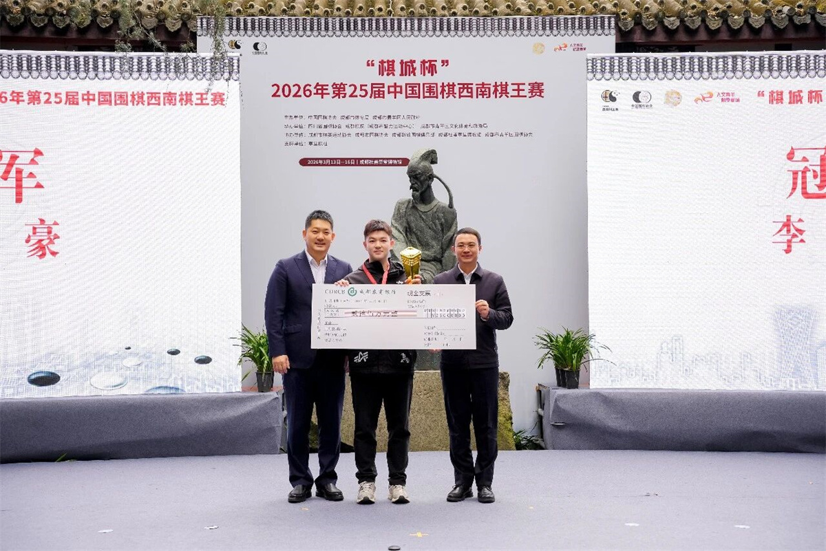 3月15日,“棋城杯”2026年第25届中国围棋西南棋王赛在成都杜甫草堂圆满收官。决赛中,李轩豪九段中盘战胜屠晓宇九段首夺冠军,并获得25万元冠军奖金;屠晓宇获得亚军及12万元奖金。