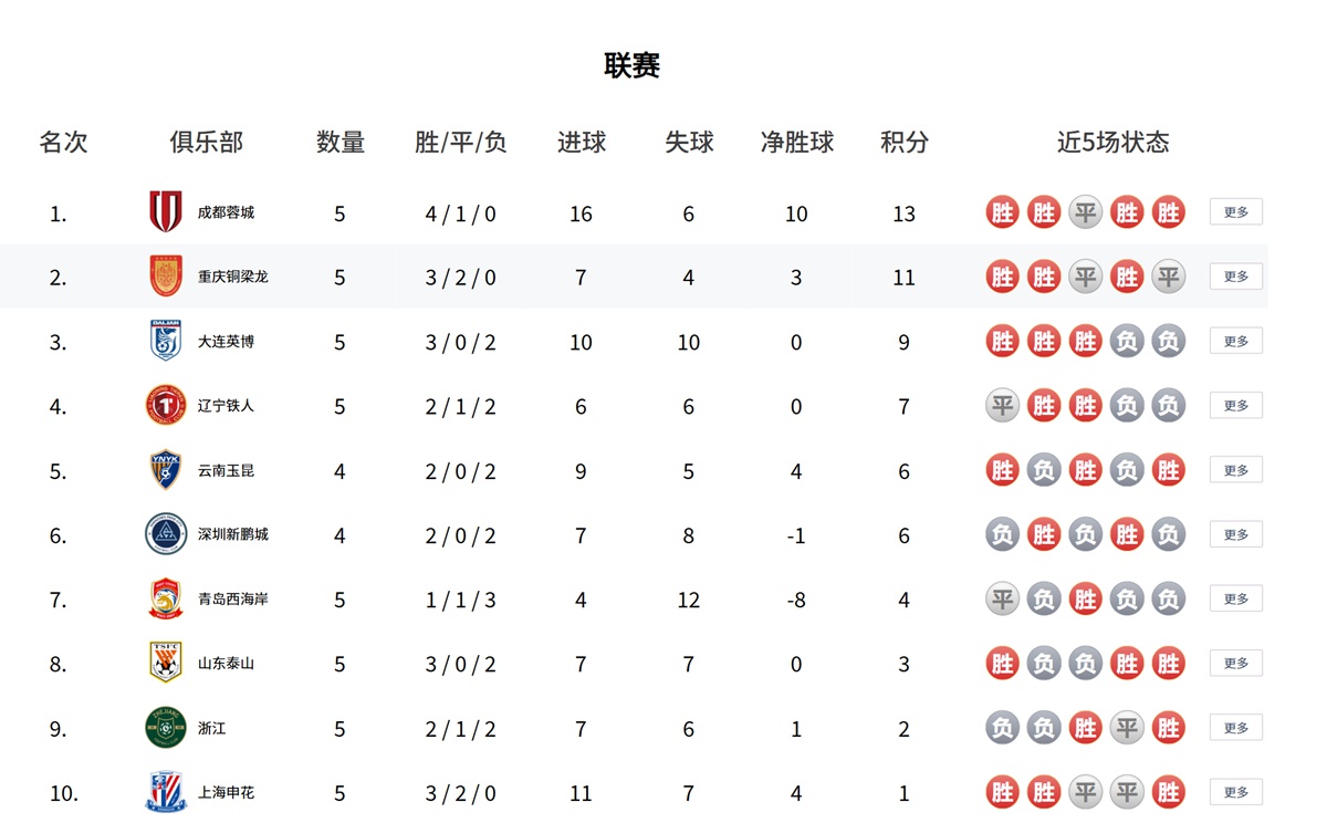 本轮比赛前,重庆铜梁龙主场2:1逆转武汉三镇,多赛一场暂时反超成都蓉城1分位列积分榜第一。但蓉城将士顶住压力,在客场全取3分后以13分重新夺回榜首位置,重庆铜梁龙以11分紧随其后。