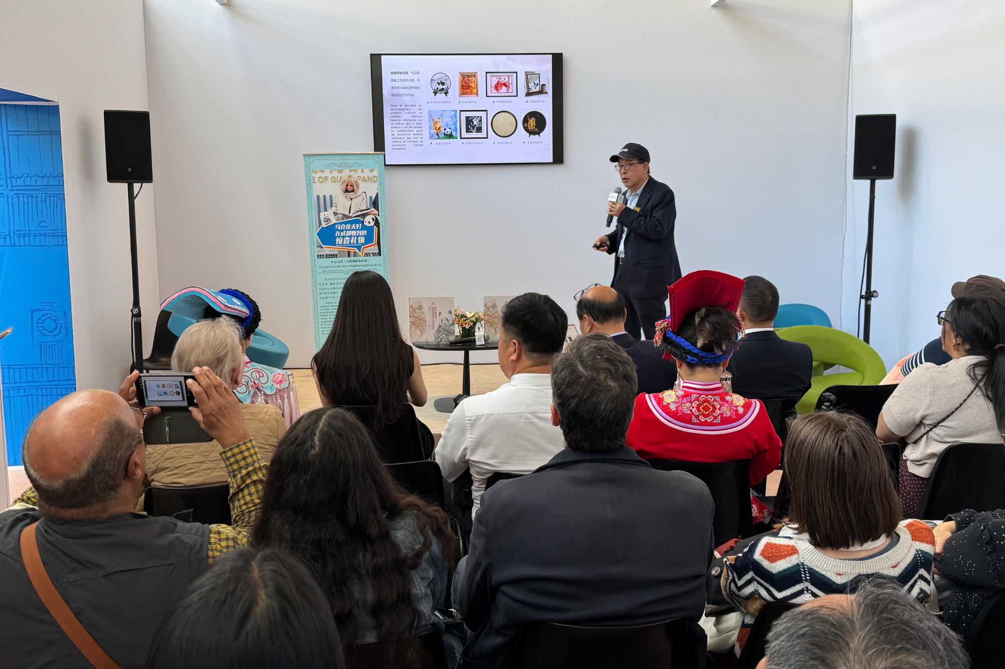 位于展馆核心区域的中国展台精彩纷呈,四川画报社旗下《四川画报》《看熊猫》双刊重磅亮相,同步展出的还有中国双宝文化学者、摄影艺术家薛康编著的中法文版《中国双宝:享誉世界的大熊猫和金丝猴》摄影画册,以熊猫为文化纽带,让中华生态出版精品在巴黎书香中绽放独特魅力。值得一提的是,薛康来到现场,在新书发布会上进行创作分享,并亲手将画册赠予法国总统马克龙。