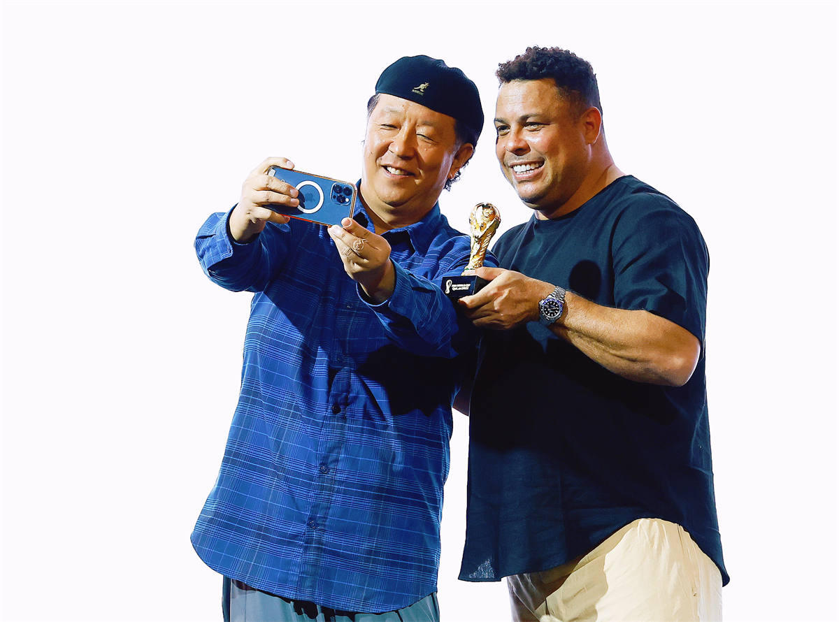 2022年11月29日,在卡塔尔多哈,刘占崑获得由国际体育记者协会和国际足联颁发的世界杯特别贡献奖,是目前唯一获得该奖项的中国摄影记者。巴西球星罗纳尔多,为刘占崑颁发奖杯。