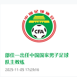 邵佳一出任中国国家男子足球队主教练